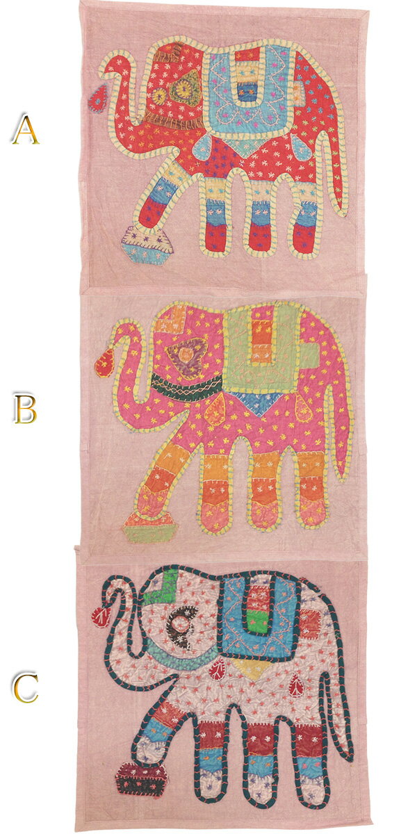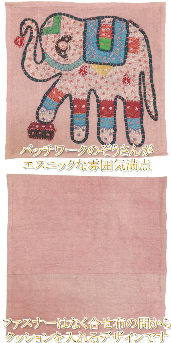 インドの職人さんのハンドメイドの全て1点物!!お部屋の雰囲気をエスニックムード満天に彩る象さんパッチワーククッションカバー☆