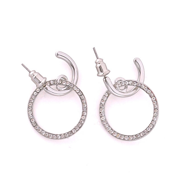 揺れるリングにラインストーンをびっしり詰め込んだゴージャスに耳元を飾る、ラウンドフープウィメンズピアス。