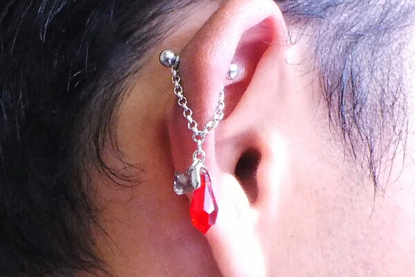 しずく型とダイヤ型のスワロビーズチャームが揺れる高級感のあるヘリックスピアス。