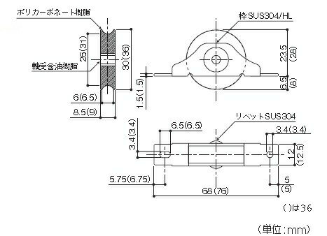 ●枠/SUS304 ●車/ポリカーボネート樹脂●釘付サイズは()内の数字を確認ください。