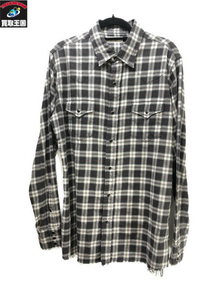 SAINT LAURENT PARIS 17AW カットオフ チェック柄ウエスタンシャツ SIZE M サンローランパリ【中古】